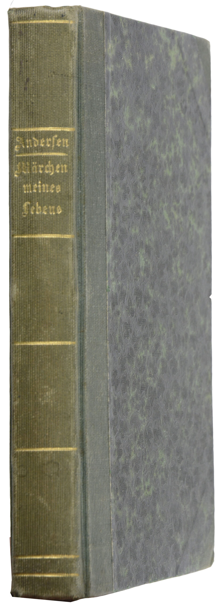Erste Ausgabe. – Autobiographie. die in den von Andersen selbst herausgegebenen „Gesammelten Werken“ als Band 1 und 2 erschien, noch vor der dänischen Ausgabe. – „Daß dieses Buch ausgerechnet in Deutschland erschien, ist nicht verwunderlich, wenn man bedenkt, daß Andersens Ruhm hier seinen Ausgang nahm, und hier zum erstenmal eine Ausgabe seiner gesammelten Werke erschien, für die Andersen seine Autobiographie als eine Art Einleitung schrieb“ (KLL I, 442) – Gering stockfleckig, Namensstempel M.J.Schleiden auf Titelblättern.