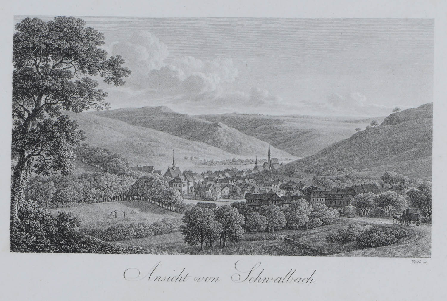 Ansicht von BAD SCHWALBACH. Gesamtansicht. 1818. Kupferstich von Veith aus Kirchner, 12,5×19,5.