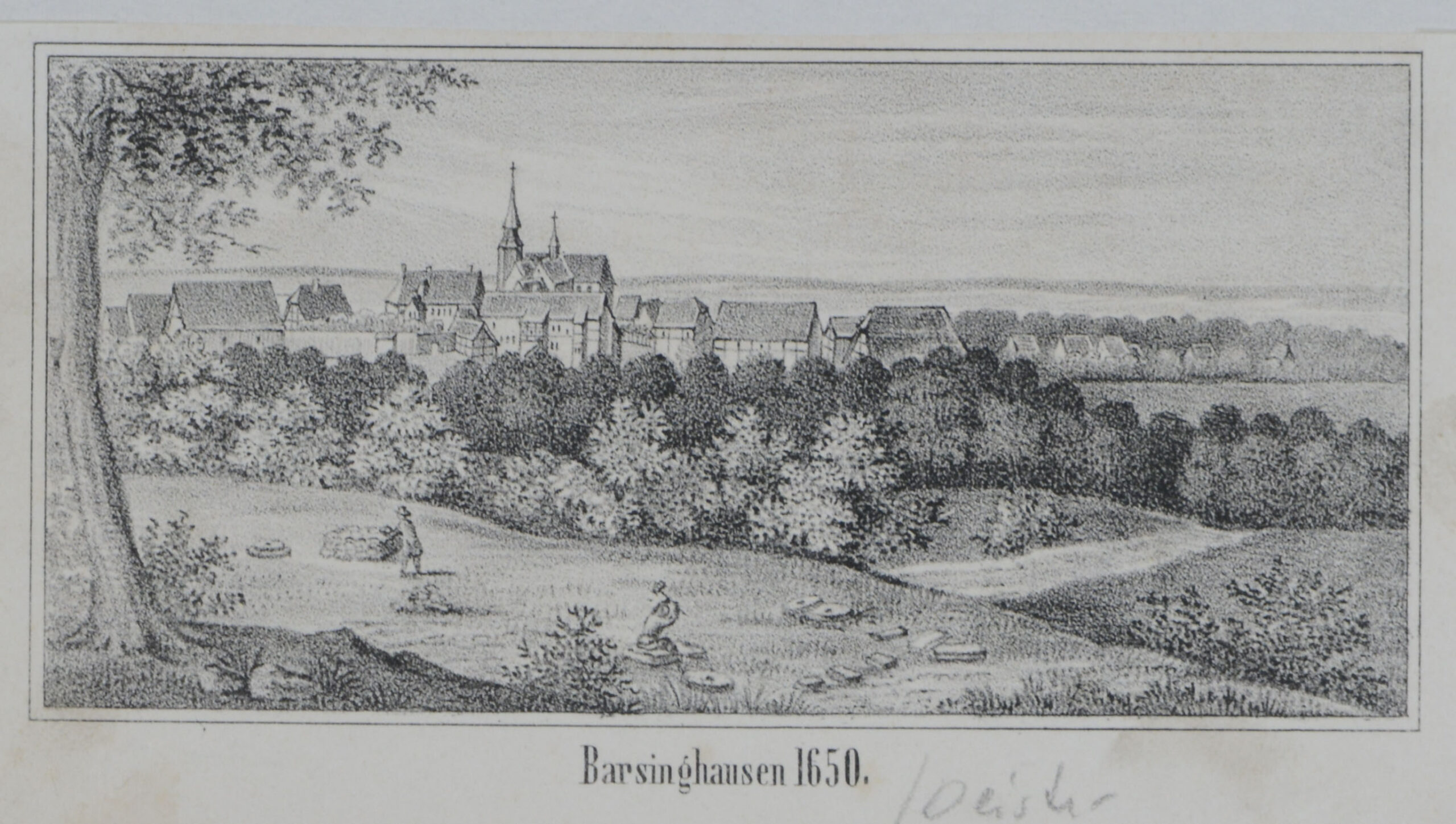 BARSINGHAUSEN/Deister. Gesamtansicht. 1845. Lithographie aus Görges, 6×12. Oberer Rand bis zur Umrahmungslinie eng beschnitten.