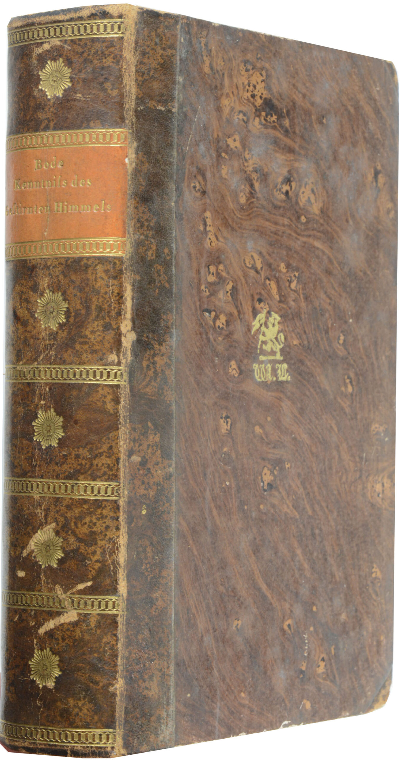 ASTRONOMIE – BODE, Johann Elert. Anleitung zur Kenntniss des gestirnten Himmels. Berlin, Stettin, Nicolaische Buchhandlung, 1823. 9., sehr verbesserte Auflage. 8°. Gestochenes Porträt, gestochener Titel mit Vignette, XVI, 662 S., 1 nn. Bl., mit 3 gestochenen Textvignetten, 1 transparenten gefalteten Tafel und 4 (teils mehrfach) gefalteten Kupfertafeln. Halbleder der Zeit mit Rückenschild und Rückenvergoldung, (etwas beschabt und leicht bestoßen).