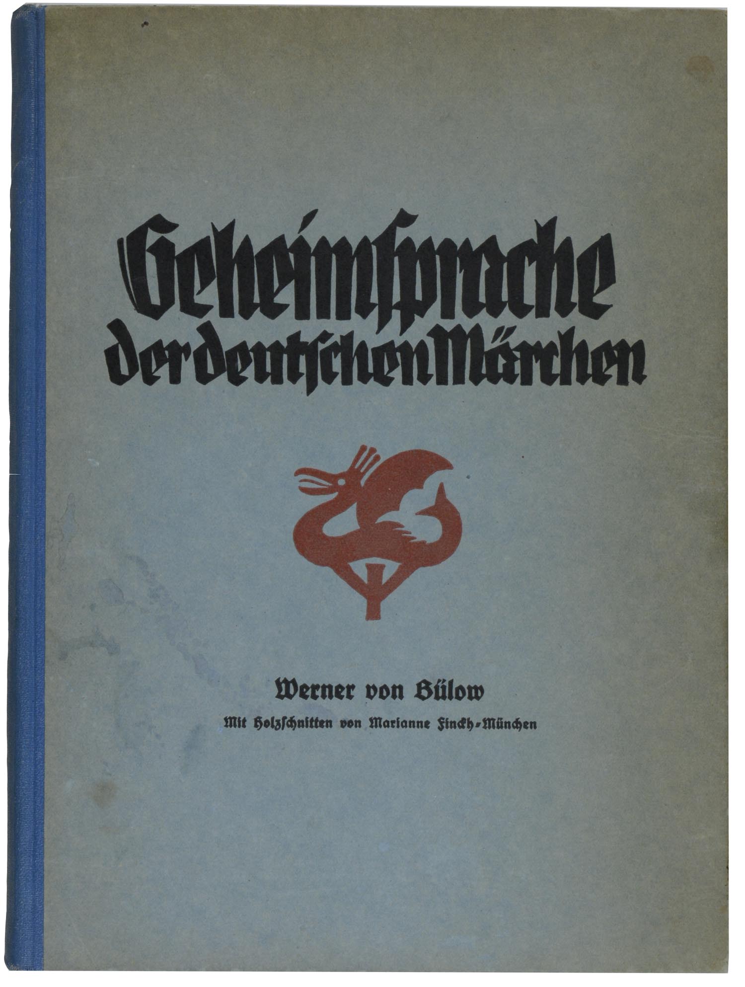 MÄRCHEN – BÜLOW, Werner von. Märchendeutungen durch Runen. Die Geheimsprache der deutschen Märchen. Ein Beitrag zur Entwicklungsgeschichte der deutschen Religion. Dresden, Hakenkreuz-Verlag, 1925. 4°. 2 nn. Bl., 107 S., mit 4 ganzseitigen Holzschnitten von Marianne Finck. Originalhalbleinen mit Deckeltitel, (etwas beschabt und leicht fleckig).
