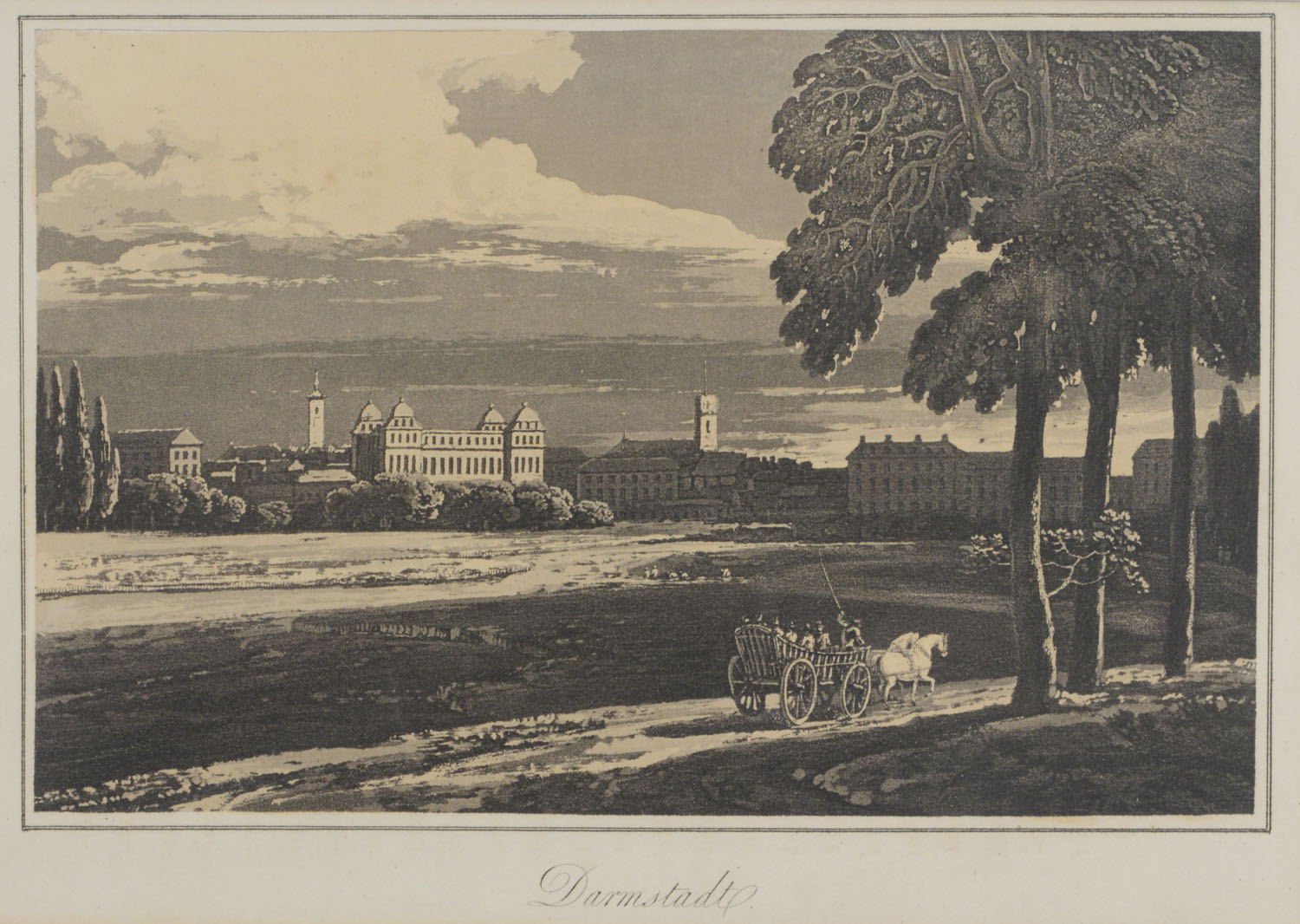 DARMSTADT. Gesamtansicht. 1807. Aquatinta von Carr, 13×20.