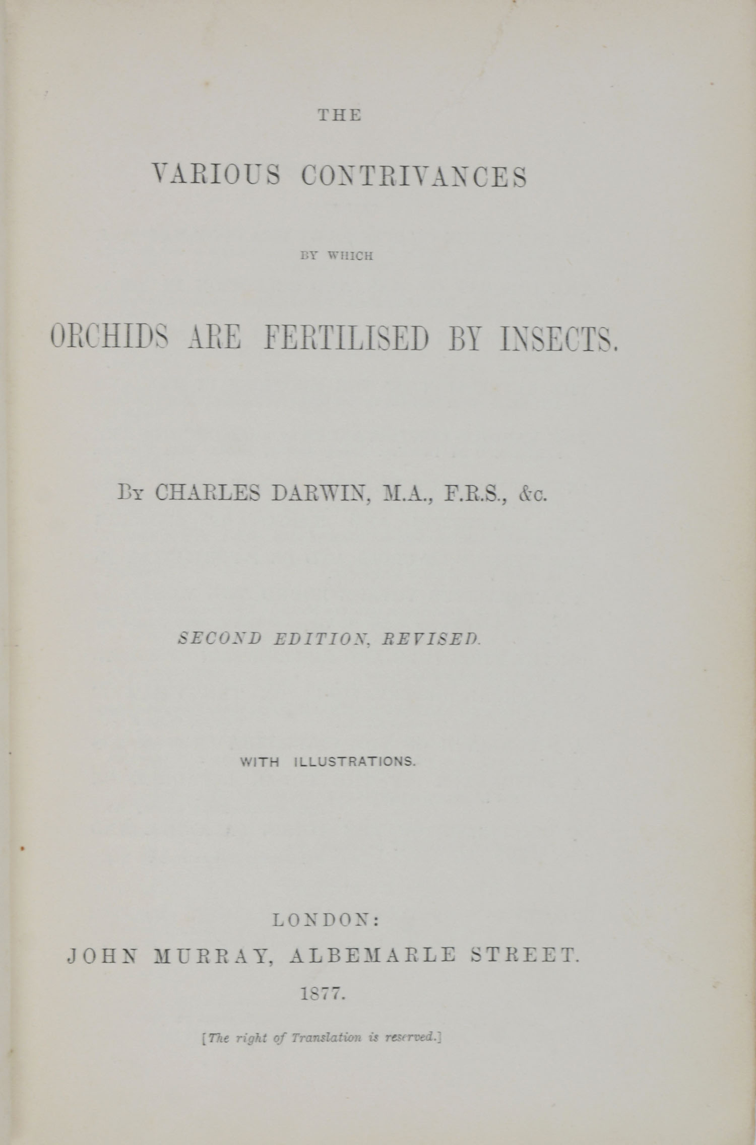 DARWIN, Charles. The Various Contrivances by which Orchids are Fertilised by Insects.
