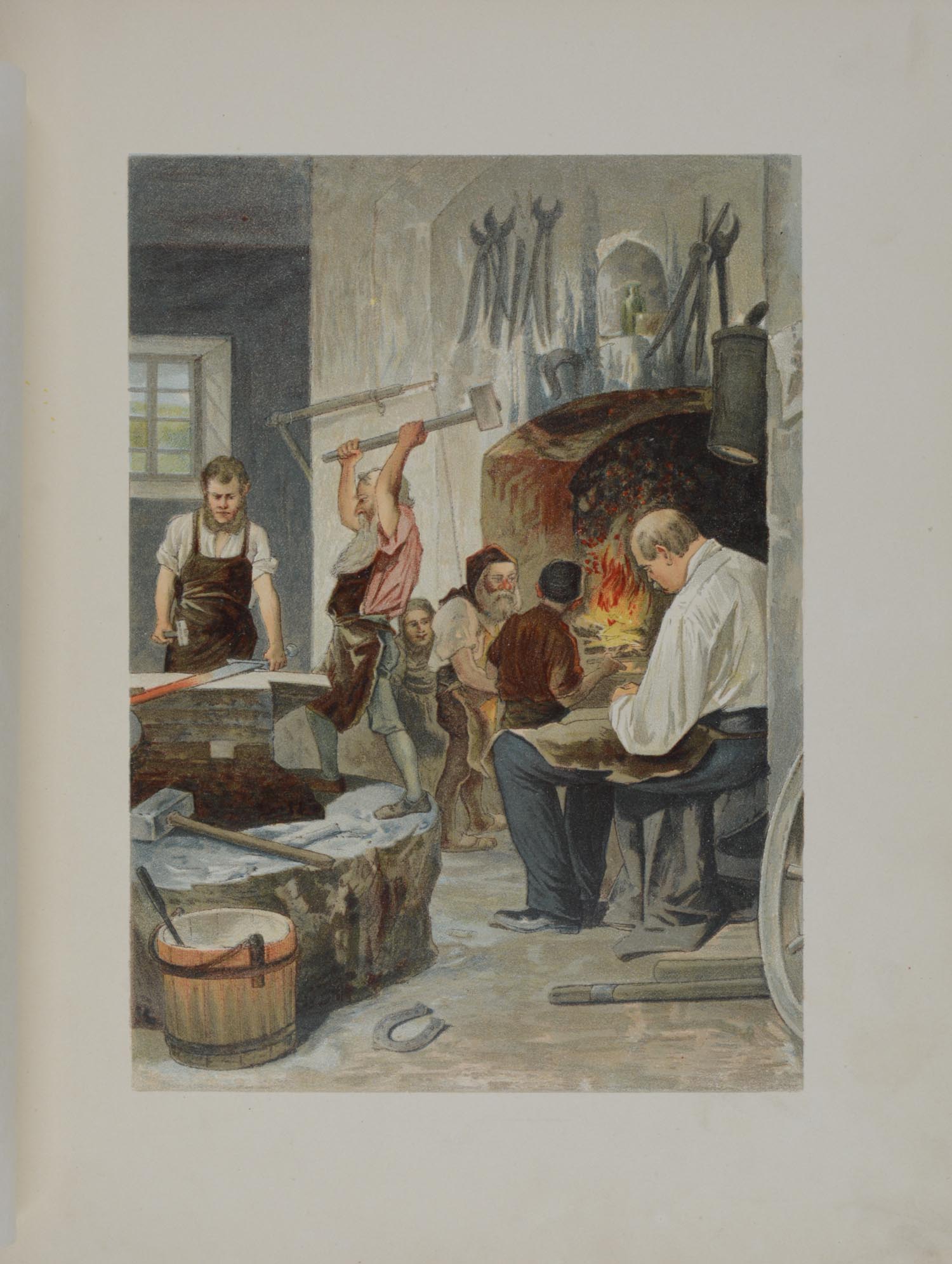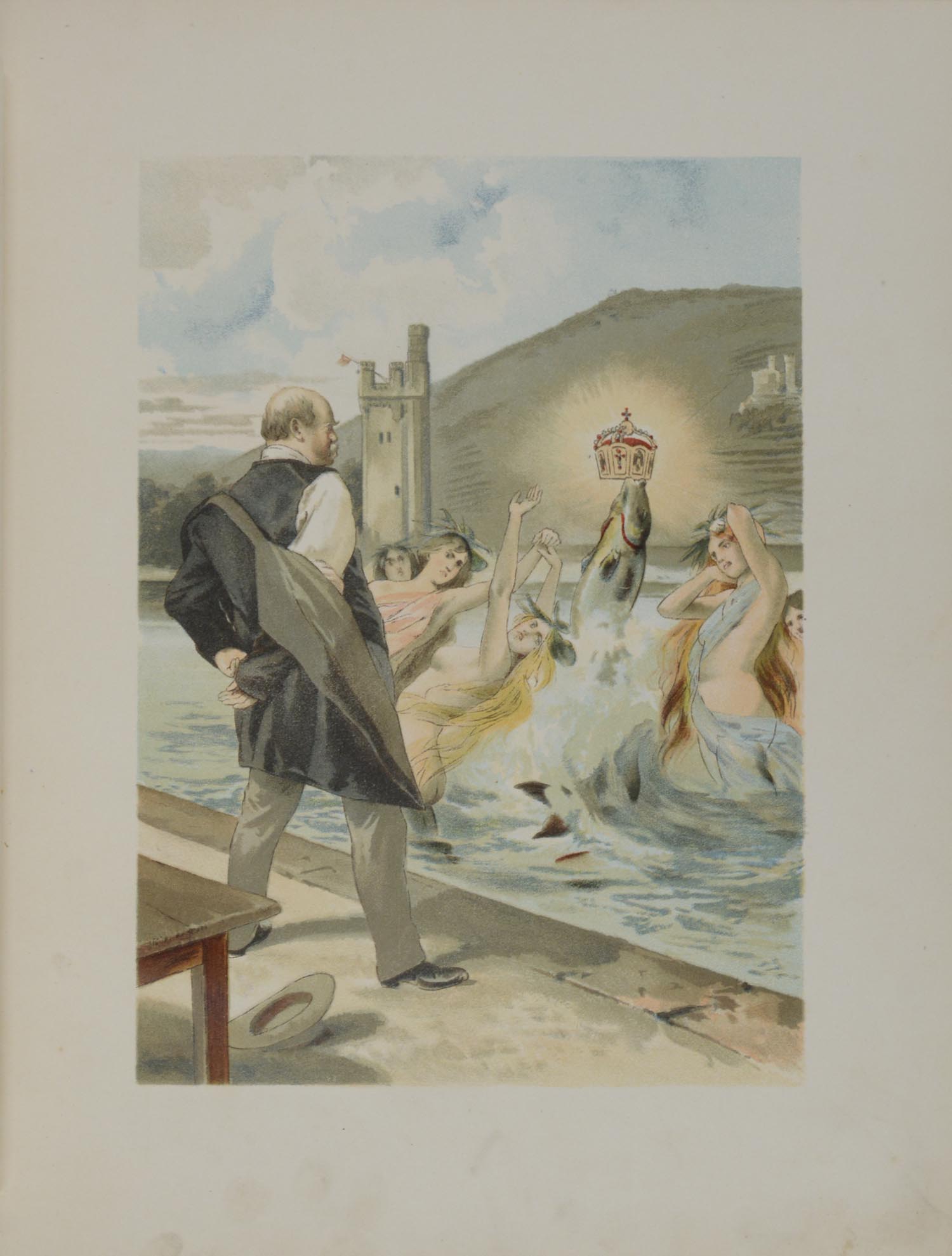 Erste und wohl einzige Ausgabe. – Schug 1850; Wegehaupt IV, 1360. – Bismarck glorifizierendes Bilderbuch aus der Kaiserzeit. – „Altgermanische Mythologie und mittelalterliche Sage werden um den Auserwählten gerankt, wobei die Gegenüberstellung von realistischen Szenen und Sagenbildern ungewollt komisch ist.“ (Schug). – Papierbedingt etwas gebräunt, leicht fleckig, etwas gelockert, fliegender Vorsatz mit Randeinrissen.