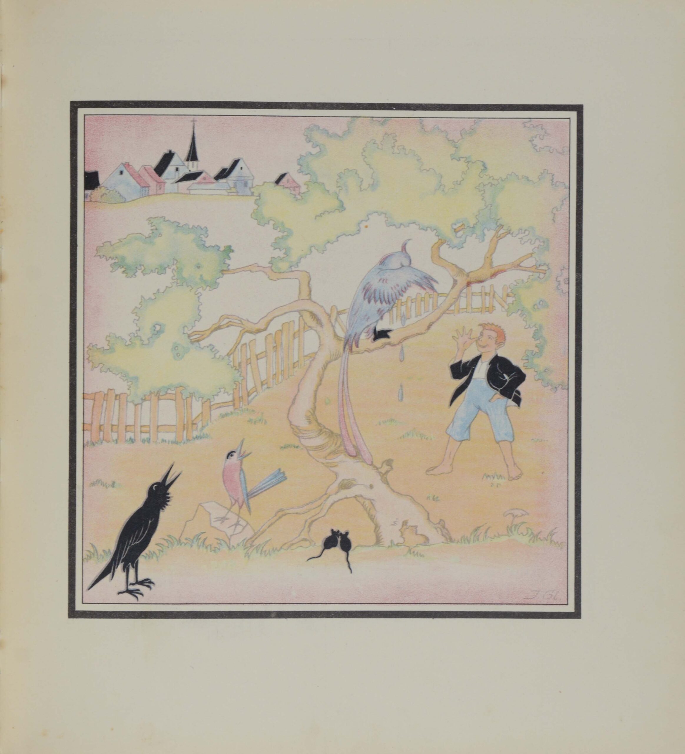 Erste Ausgabe. – WG 55; Doderer I, 296; Doderer/Müller 773. – „D(ehmel)’s Schaffen… hat den literarischen Naturalismus, Jugendstil und Frühexpressionismus zugleich mit angeregt und aufgenommen. Sein revolutionäres Engagement gegen die klassische Form, gegen soziale Ungerechtigkeit und bürgerlich traditionelle „Sitte“ zeigt sich auch in vielen seiner Äußerungen über Erziehung und in seiner Dichtung für Kinder.“ (Doderer I, 295). – Mit zauberhaften leichten Illustrationen von Irma Gleitsmann. – 1 Blatt mit 2 geklebten Einrissen, bis in die Abbildung hineinreichend, sonst minimal fleckiges Exemplar.