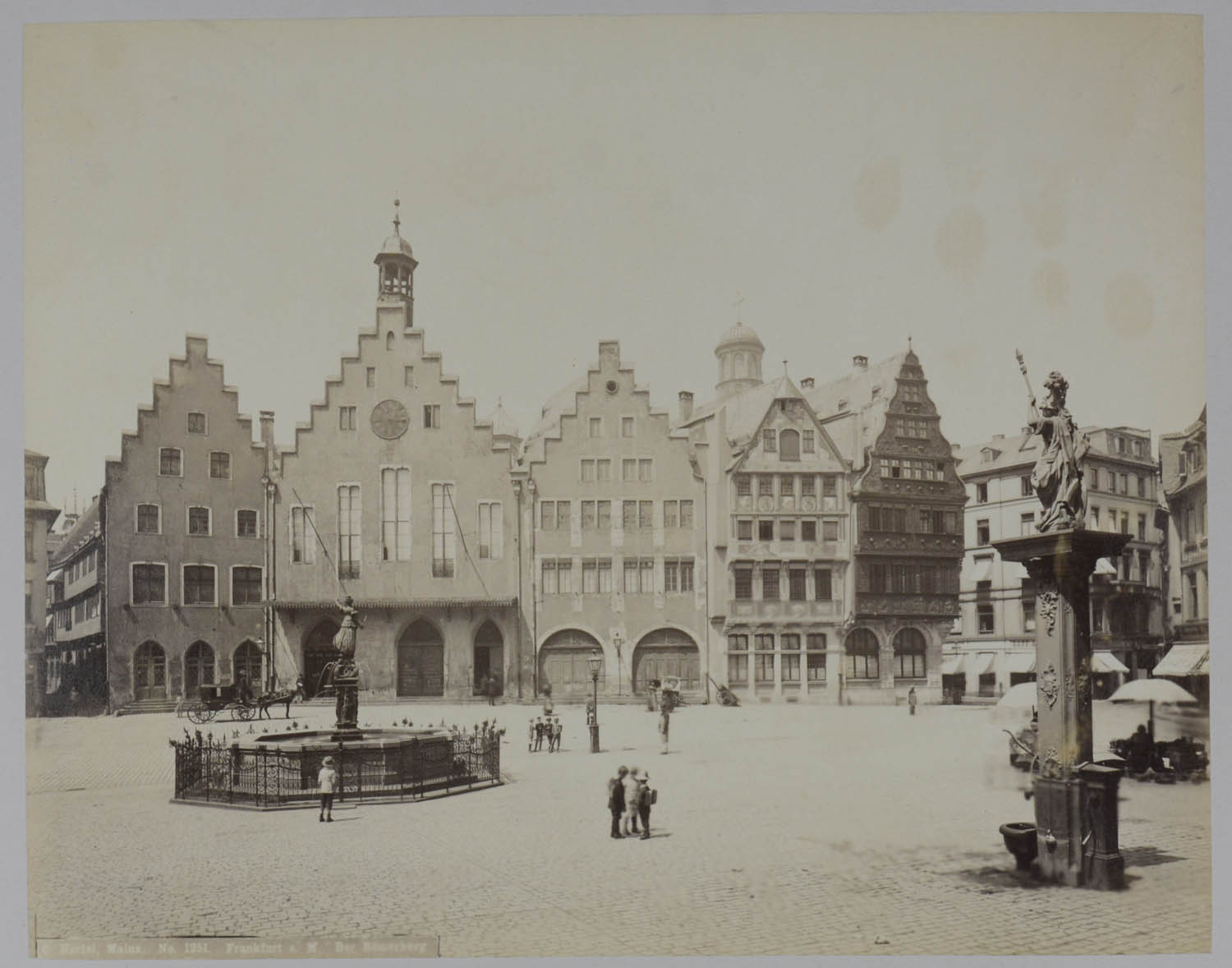 FRANKFURT –  Der Römerberg. (um 1890). Originalfotografie von C(arl) Hertel, Albuminabzug in der Platte bezeichnet und nummeriert. 20,3 x 25,5. Auf Karton montiert.
