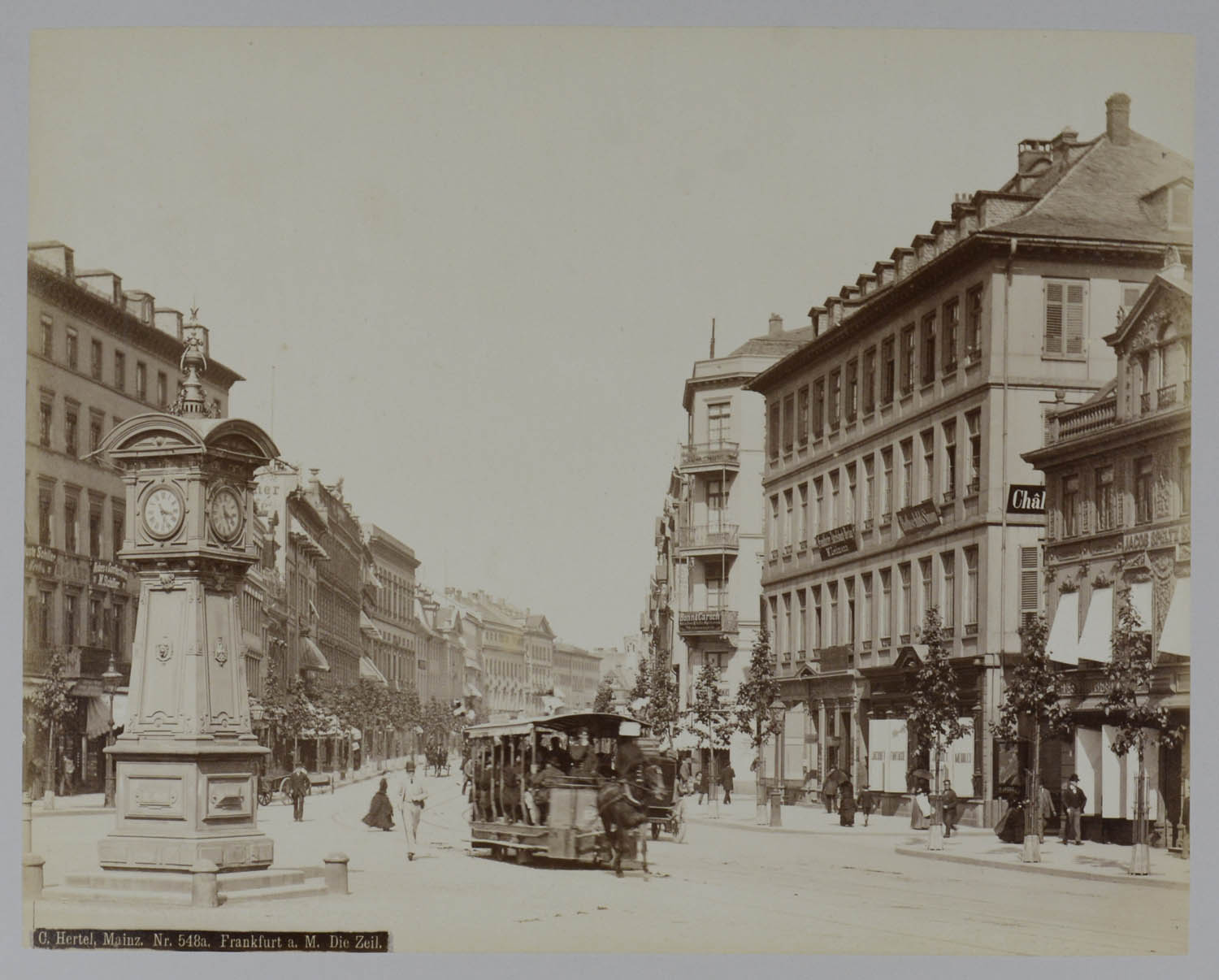 FRANKFURT – Die Zeil. (um 1880). Originalfotografie von C(arl) Hertel, Albuminabzug in der Platte bezeichnet und nummeriert. 20 x 25,2. Auf Karton montiert.