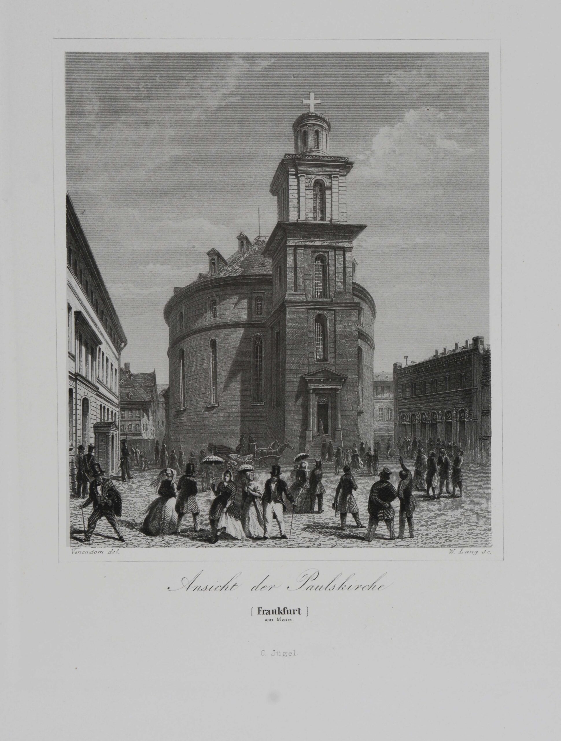 Sehr schönes Ansichtenwerk von Frankfurt am Main. – Sauer 766. – Enthält Darstellungen vom Römerberg, der Börse, Paulskirche, Hauptwache, Zeil, Roßmarkt, Gesamtansichten, usw., sowie eine nicht im Tafelverzeichnis angegebene Ansicht der „Mainlust“. – Mit den farbigen Zwischenpapieren. – Sehr schönes Exemplar. // Oblong 4to. Lithographed title, 1l., with 32 steel engraved plates after J. Dielmann. Binding in original colour lithographed half cloth, (slightly rubbed, corners slightly bumped). Very beautiful views of Frankfurt am Main. – Sauer 766. – Contains illustrations of the Römerberg, Börse, Paulskirche, Hauptwache, Zeil, Roßmarkt, general views, etc., as well as a view of the „Mainlust“ not indicated in the list of tables. – With the coloured intermediate papers. – Very nice copy.