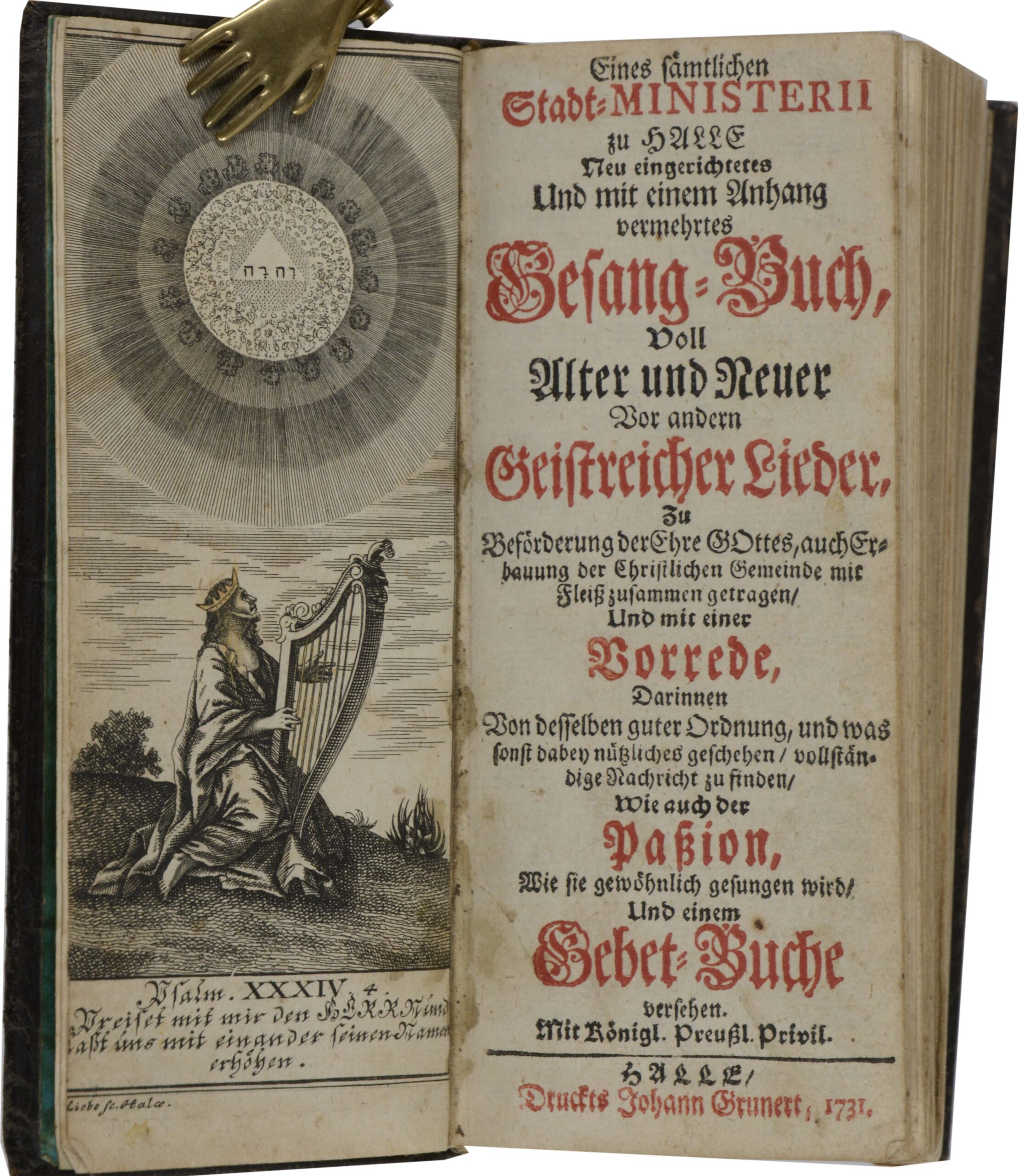 Eines sämtlichen Stadt-Ministerii zu Halle Neu eingerichtetes Und mit einem Anhang vermehrtes Gesang-Buch, Voll Alter und neuer vor andern Geistreicher Lieder…