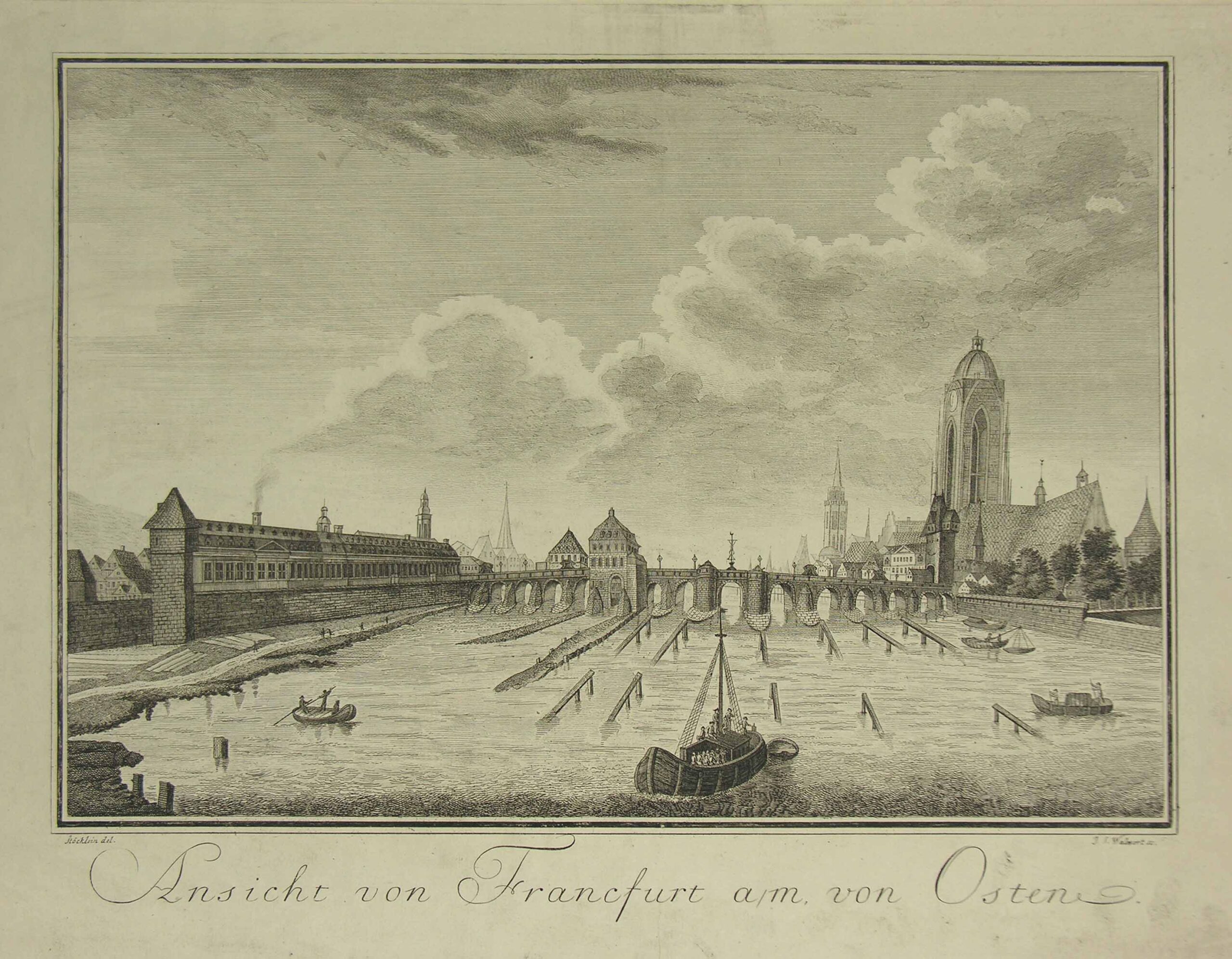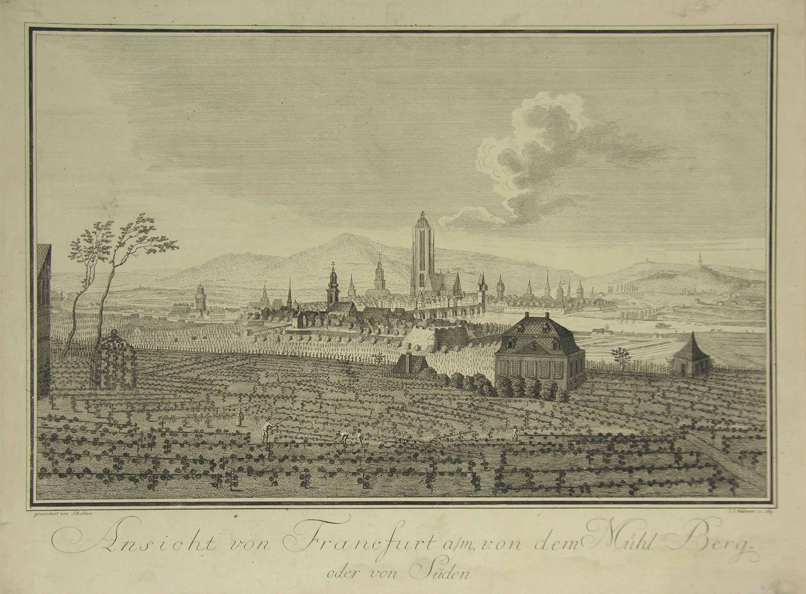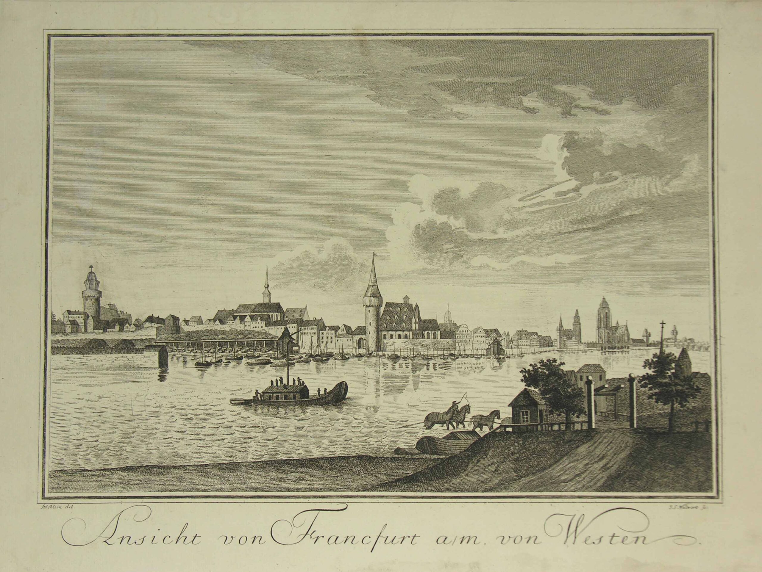 GESAMTANSICHT –  Frankfurt. Folge der 4 Blatt Gesamtansichten von allen 4 Himmelsrichtungen. Um 1780. Kupferstiche von Walwert nach Stöcklein. Slg. Cornill 302; Slg. Stiebel 26.