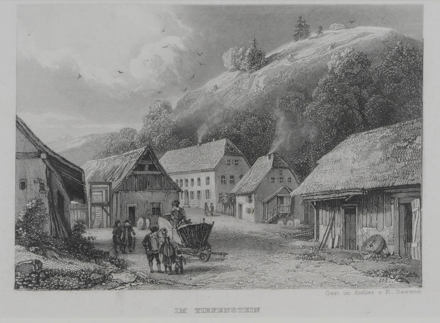 GÖRWIHL – TIEFENSTEIN. Ansicht der Mühle im Tiefenstein. Um 1850. Stahlstich von Dawson. 10,8×15,4.