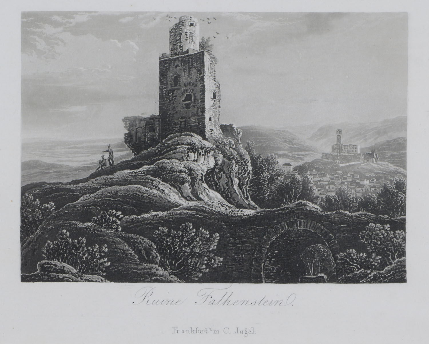 KÖNIGSTEIN/Taunus. Ruine Falkenstein. Frankfurt a.M. Jügel 1839. Aquatinta, 11×13.