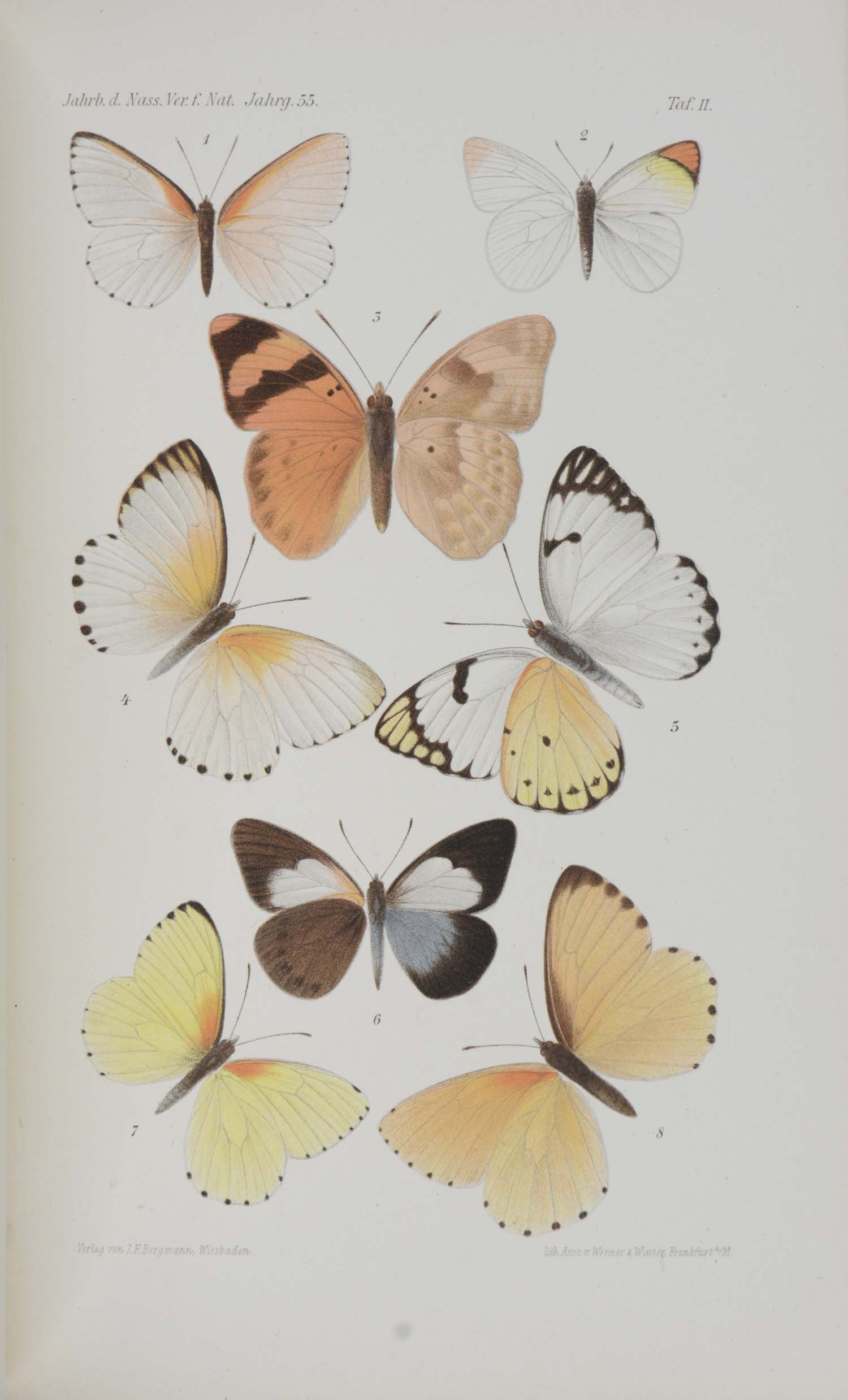 Umfangreiche Teilserie der für die Entomologie und Geologie wichtigen Publikation. Die Bände enthalten neben den Beiträgen zur Entomologie und Geologie auch Texte zur Meteorologie, Chemie, Physik und Botanik verfasst von H.Fresenius, Wilhelm Schuster, W. von Reichenau, August Fuchs, Arnold Pagenstecher, Paus Preiss, Embrik Strand, Wilhelm Kobelt u.v.a. – Unaufgeschnittene Exemplare.