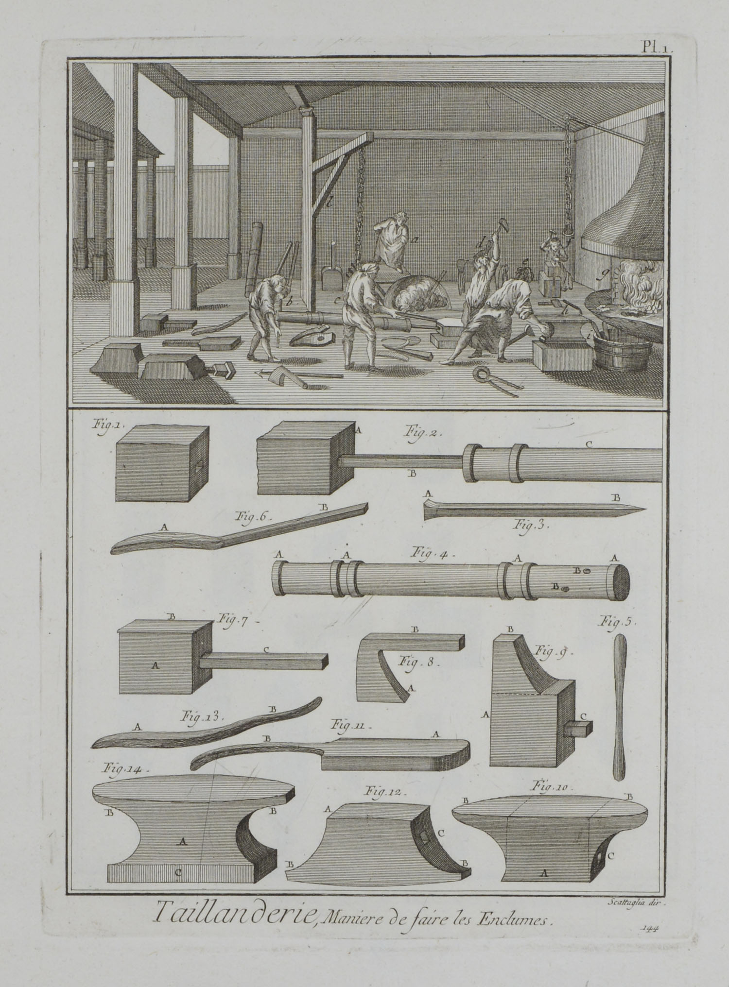 SCHMIED. – ZEUGSCHMIED (Taillandier). Um 1780. 6 Kupferstiche aus Diderot und d’Alembert: Encyclopédie, ou dictionnaire raisonné des sciences, des arts et des métiers. 23,5 x 16. Geheftet ohne Umschlag.