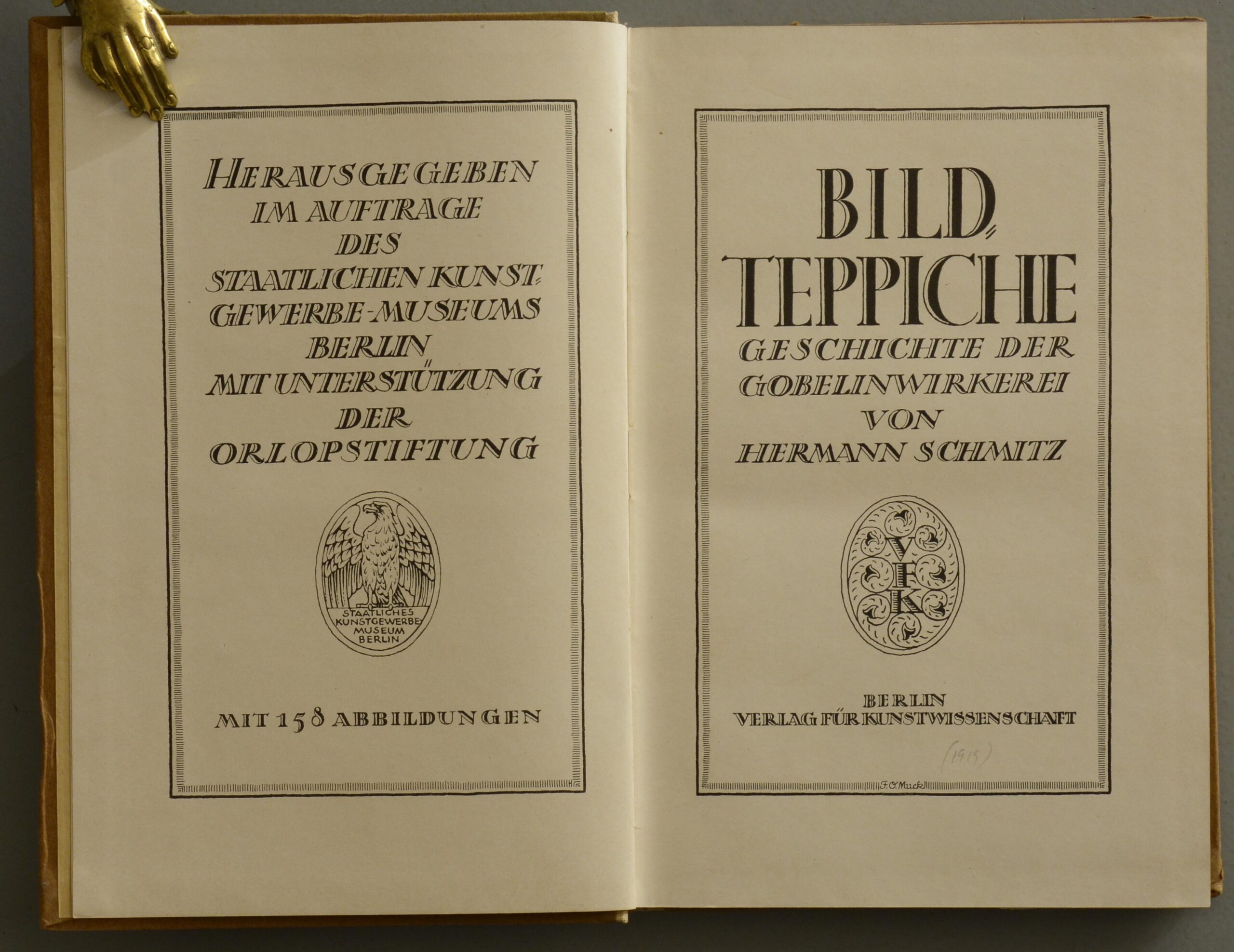 TEPPICHE – SCHMITZ, Hermann. Bildteppiche. Geschichte der Gobelinwirkerei. Berlin, Verlag für Kunstwissenschaft, (1919). Gr.-8°. 352 S. Mit 158 tlw. ganzs. Abb. Original-Halbleineneinband, (Rücken etwas fleckig).