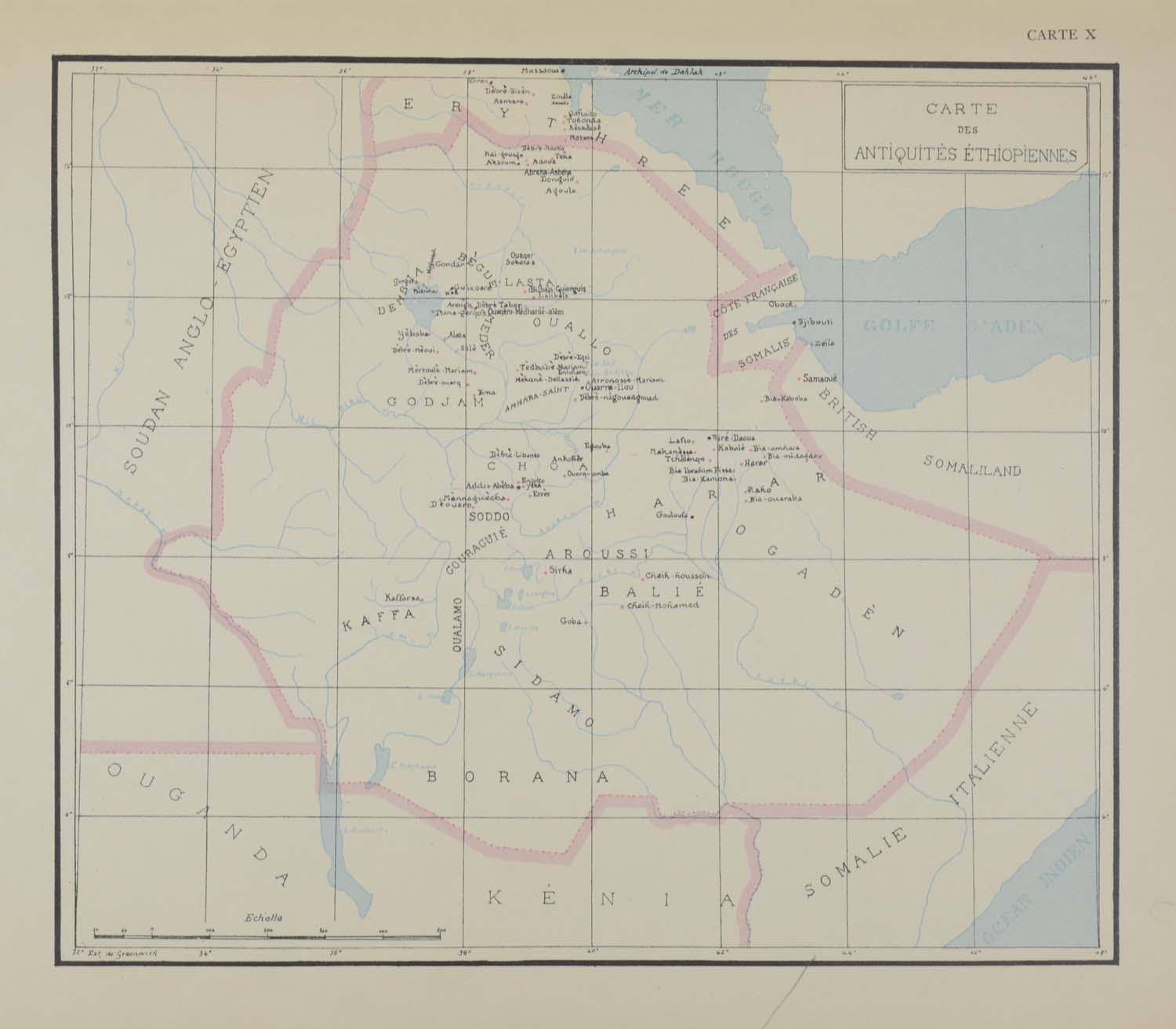 AFRIKA/ABESSINIEN – SELLASSIÉ, Guèbrè. Chronique du Règne de Ménélik II Roi des Rois d’Ethiopie. Atlas. Paris, Librairie orientale et américaine Maisonneuve Frères, 1930. Folio. 10 (davon 3 farbige) Karten. Halbleinen der Zeit mit Rückentitel, Originalbroschur eingebunden, (etwas bschabt und bestoßen).