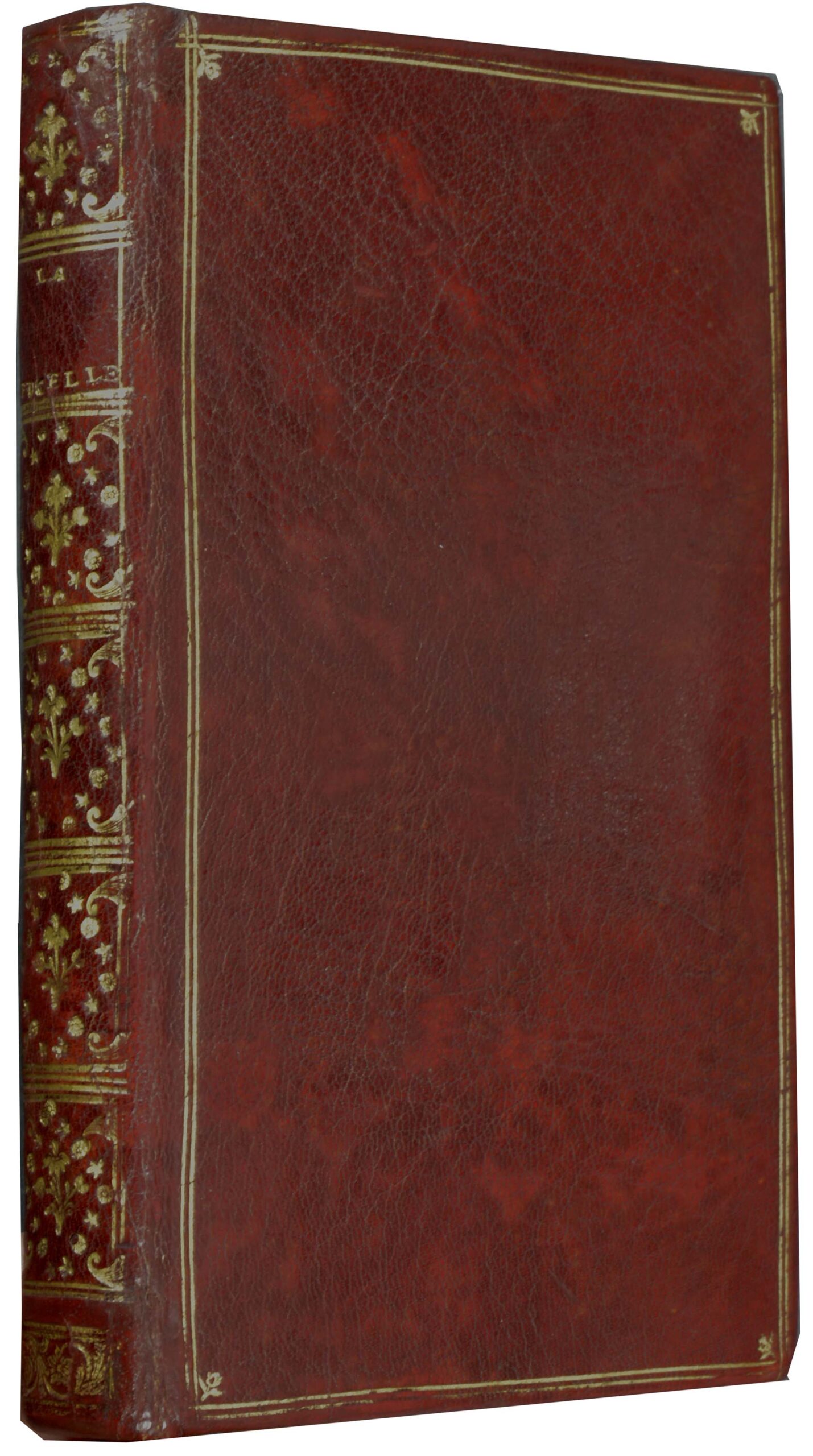Erste von Voltaire autorisierte Ausgabe. – Cohen-de Ricci 1029; Sander 2011; Brunet V, 1361. – „Celle de 1762… est la première qui ait paru de l’aveu de l’auteur… “ (Brunet). – Die 20 hübschen gestochenen Tafeln stammen wohl von Gravelot. – Wenige Seiten etwas fleckig, entferntes Ex-Libris auf Innenspiegel. Dekoratives Exemplar. // 2 unn. ll., VIII, 358 (recte 354) pp., with 20 engraved plates. Wine-red marocco with gilt-stamped cover fillets and corner fleurons, richly gilt spine, gilt edges, (slightly rubbed and slightly stained). – First edition authorized by Voltaire. – Cohen-de Ricci 1029; Sander 2011; Brunet V, 1361. – „Celle de 1762… est la première qui ait paru de l’aveu de l’auteur… “ (Brunet). – The 20 beautifully engraved plates are presumably by Gravelot. – A few leaves somewhat stained, torn out bookplate at inner cover. Decorative copy.