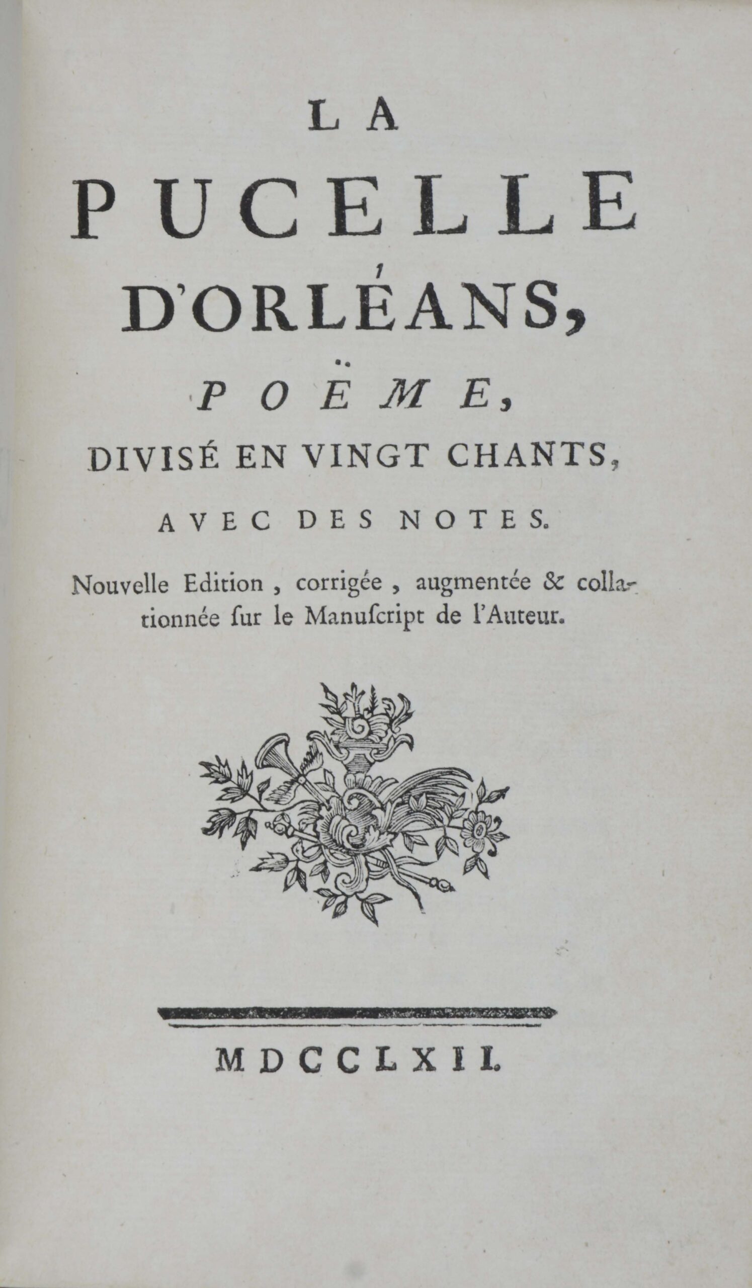 Poeme, divisé en vingt chants, avec des notes.Nouvelle édition, corrigée, augmentée & collationnée sur de Manuscript de l’Auteur.