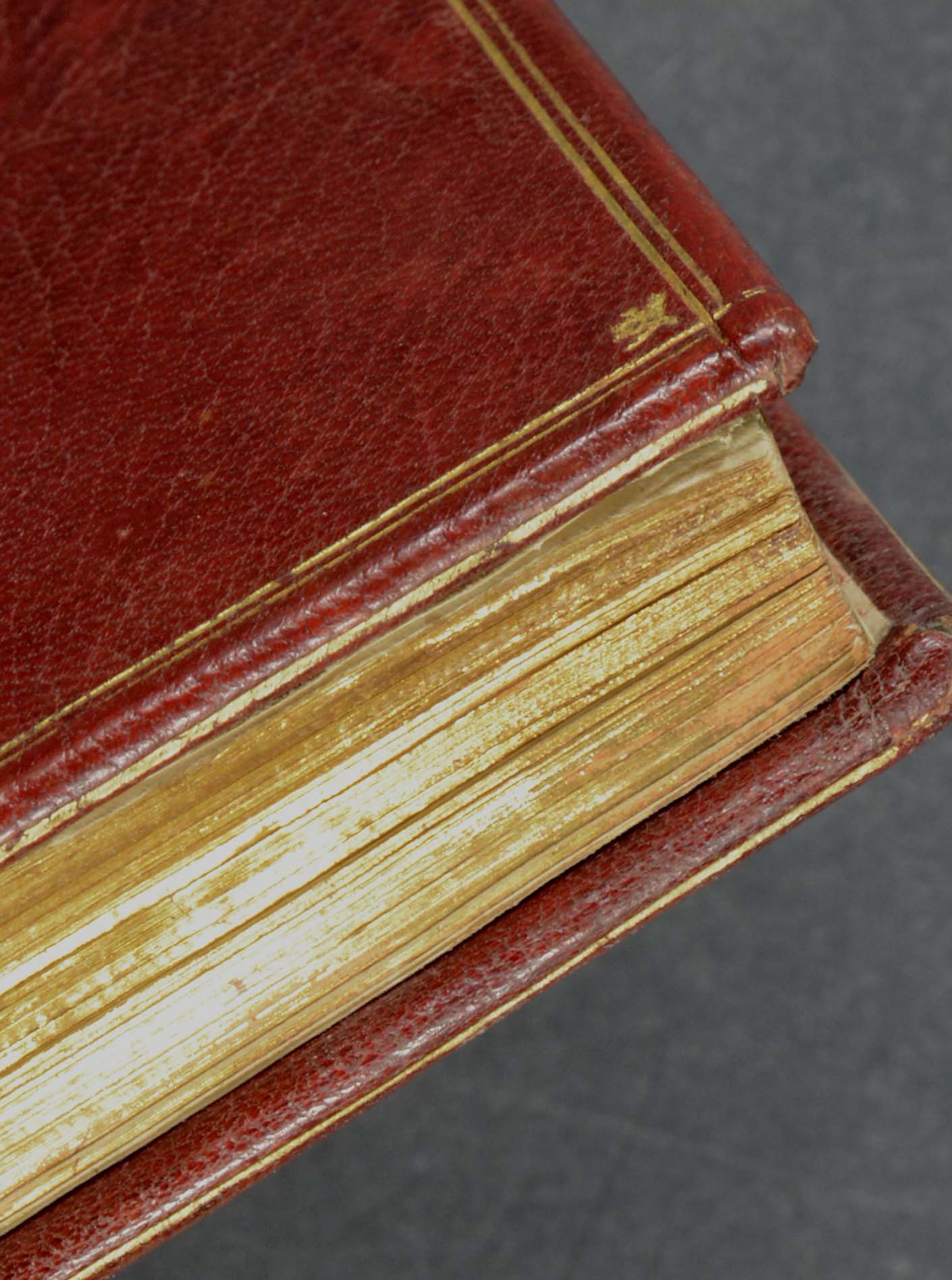 (VOLTAIRE, F.M.A. de.). La Pucelle d’Orléans, Poeme, divisé en vingt chants, avec des notes.Nouvelle édition, corrigée, augmentée & collationnée sur de Manuscript de l’Auteur. (Genève, Cramer), 1762. 8°. 2 nn. Bl., VIII, 358 (recte 354) S., mit 20 Kupfertafeln. Weinrotes Maroquin mit goldgeprägten Deckelfileten und Eckfleurons, reicher Rückenvergoldung, Goldschnitt, (gering beschabt und leicht fleckig).
