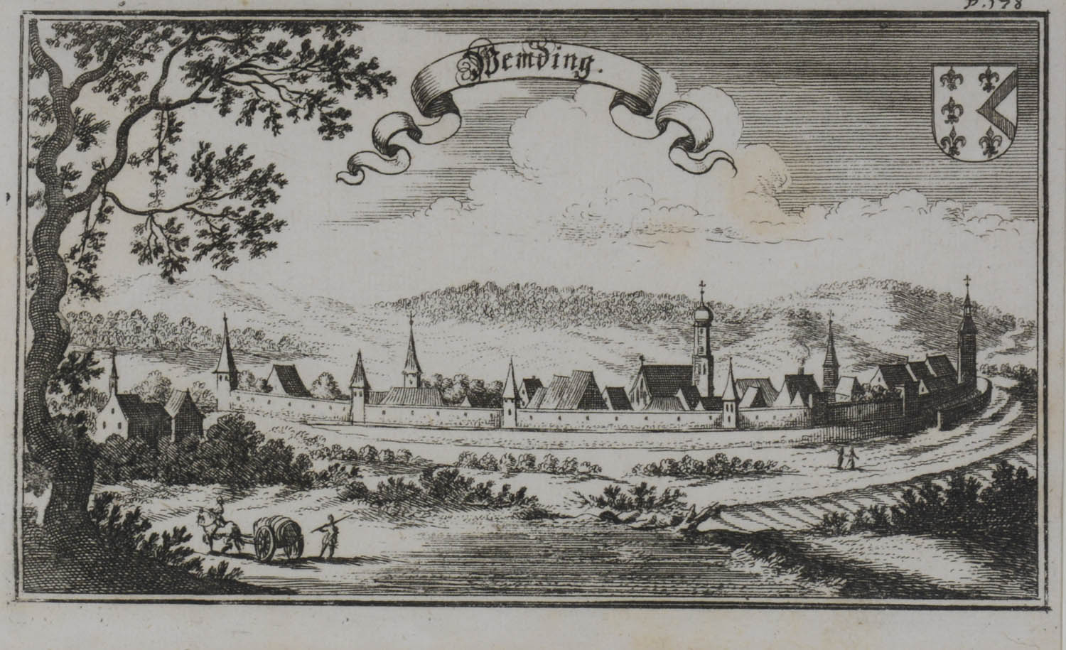 WEMDING. Gesamtansicht. 1687. Kupferstich aus Ertl, 8×14.