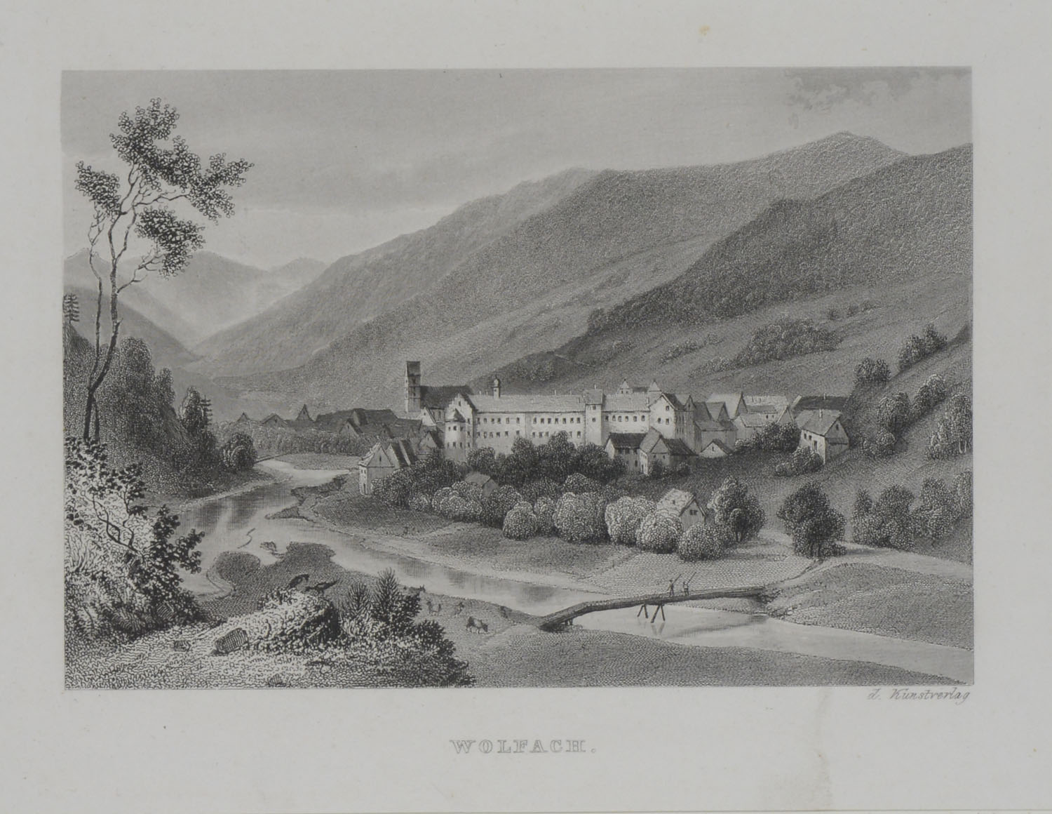 WOLFACH. Schwarzwald. Gesamtansicht. Um 1850. Stahlstich. 10,3×15,2.